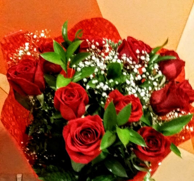 Un bonito ramo de flores de doce rosas rojas con paniculata es lo que un esposo muy enamorado le ha enviado a su media naranja, por ser uno de los días más importantes para celebrar.